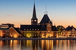 Die Hauptstadt Schleswig-Holsteins ist die maritime Perle des Nordens, in der sich die Werft- und Marinetradition der Grossstadt mit ländlicher Naturverbundenheit vermischen. Die Strandkorb-Idylle vor der Stadt wird von Segelbooten auf rauer See und dem Leuchtturm in der Ferne untermalt. Bekannt ist die Kulturstadt Kiel auch für das weltweit grösste Segelfest, die alljährliche „Kieler Woche“.