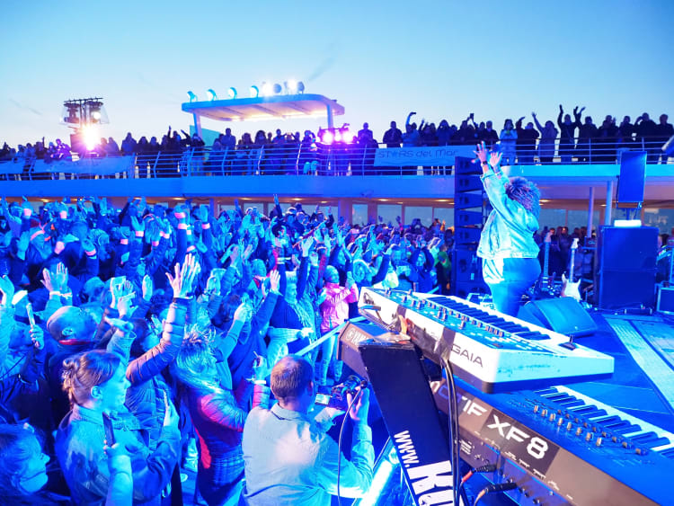 Wie auch in den vergangenen Jahren, ist das Pooldeck der Austragungsort für unsere Konzerte/Shows am Abend. Je nach Wetterverhältnissen empfehlen wir Ihnen warme Kleidung. Falls Konzerte wegen zu schlechtem Wetter nicht auf dem Pooldeck stattfinden können, werden diese ins Theater verlegt. Hier können Sie nach Bekanntgabe der Änderung einfach über "Meine Reise" Ihre Eintrittszeit für den Abend reservieren.